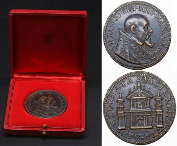 Papal States. Urban VIII (1623-1644) Medal 29-06-1636. 27.60 gr. - 41 mm. Restoration of the church of St. Anastasia 1635. Opus:Gaspare Mola. VRBANVS • VIII • PON • MAX • A • XIII; GASP • MOLI • / * AEDE EXORNATA _ FACIE RESTITVTA. Miselli 280. R2 XF