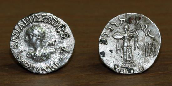 | Bactria Kingdom AR Drachm, Menander I Soter, (155 - 130 BC) |