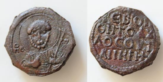 | Crusaders, Antioch. Tancred (Regent, 1101-03, 1104-12). Æ Follis (23mm, 6g, ). Nimbate facing bust of St. Peter, holding cruciform sceptre. R/ Legend in four lines |