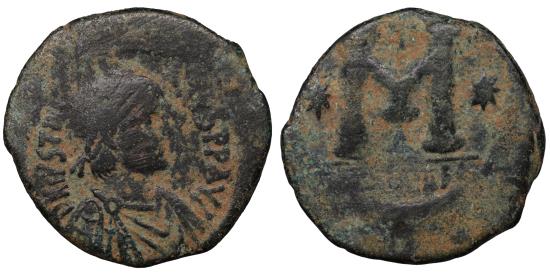 JUSTINIAN I. 527-565 AD. Æ Follis. Antioch mint