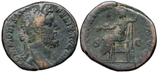 Commodus A.D. 183 Ӕ Sestertius 26x30mm 17.2g M COMMODVS ANT P FELIX AVG BRIT; laureate head right. P M TR P XI IMP VII COS V P P; Jupiter seated left, holding thunderbolt in his right hand and long scepter in his left; S-C across fields. RIC III Rome – Not listed in RIC with this reverse legend with Jupiter holding thunderbolt Dr. John Harvey Kellogg (1852-1943) was the founder of the Battle Creek Sanitarium and inventor of the Corn Flake. Coin comes in pillbox from the sanitarium |