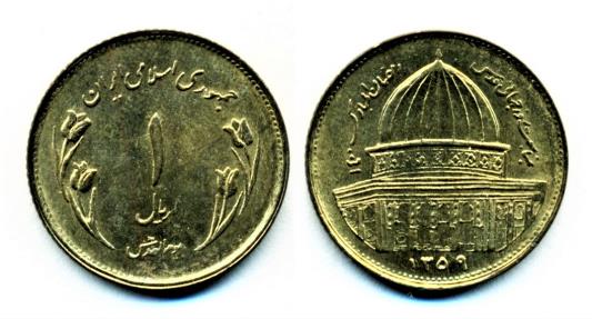 IRAN: Commemorative one Rial ( 20 mm), World Jerusalem Day, dated SH 1359 (1980), KM# 1245 Lustrous UNC.
