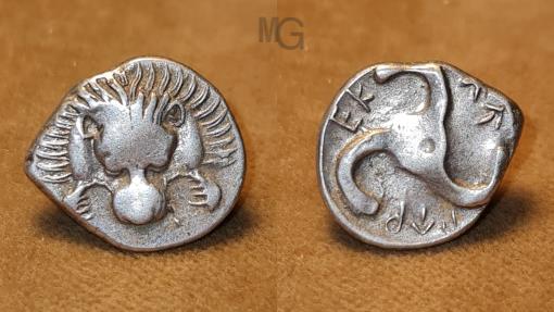 DYNASTS OF LYCIA. Perikles, circa 380-360 BC. 1/3 Stater. AR silver. Facing lion's scalp. // ('Perikle' in Lycian) Triskeles.