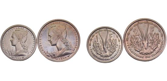 Cameroon French Mandate 1948 1Franc & 2 Francs 2 Lots, ESSAI Pattern 5.3g/10.0g