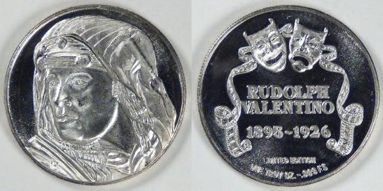 | circa 1980s “Ruldoph Valentino” Silver Round, Gem BU Prooflike |