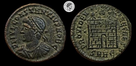 | CONSTANTIUS II, as Caesar. 324-337 AD. AE Follis. Heraclea mint. Green-black patina with some deposits. VF. |