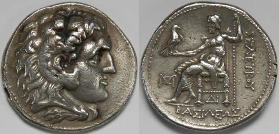 Seleukid Empire Seleukos I Nikator AR Tetradrachm 312-281 BC Head of Herakles right, wearing lion skin / Zeus Aëtophoros seated left; monograms in left field and below throne. In the types of Alexander III (the Great) of Macedon. Struck in Seleukeia on the Tigris, circa 300-281 BC. About Extremely Fine. Minor marks and some discoloration on obverse. SC 117.1c, HGC 9 12i. Comes with a photo certificate from Künker, Germany. |