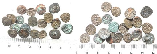 LOT OF 20 AS FOUND: Arabia Felix. Himyarite Kingdom. 100 - 300 A.D. Rare copper Bucranium coins.