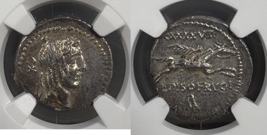 Roman Republic. L. Calpurnius Piso Frugi, 90 BC. AR Denarius. Rome