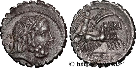ANTONIA Denier serratus 83-82 AC. Rome silver Obverse : S. C Tête laurée de Jupiter à droite Reverse : Q. (ANT)O. B(AL)B/ PR Victoria (la Victoire) debout dans un quadrige galopant à droite, tenant une couronne de la main droite, une palme et les rênes de la gauche Commentary : Très belle monnaie sur un flan légèrement décentré. Joli portrait de Jupiter. Revers finement détaillé. Patine grise FR : Pour ce type, M. Crawford a relevé une estimation de 340 coins de droit et de 378 coins de revers pour cinq variétés différentes EN : For this type, Mr. Crawford noted an estimate of 340 right dies and 378 reverse dies for five different varieties