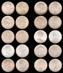 1928-1937 Austria Commemorative 10 coin 2 Schilling Set (KM-2843, 2844, 2845, 2847, 2848, 2849, 2852, 2855, 2858 & 2859) BU; Silver, some coins are lightly toned. A very nice looking set. Getting difficult to complete in the higher grades.