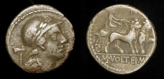 *** Reserved*** Roman Republic. M Volteius, AR Denarius 78 BC. Biga of Lions