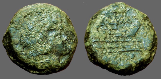 Roman Republic AE22 Quadrans. Herakles in lionskin / Galley Prow