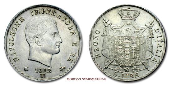Kingdom of Italy / Königreich Italien / Короле́вство Ита́лия / Koninkrijk Italië / Reino de Italia / Royaume d'Italie / Regno d'Italia, Napoleon I (coins) / Napoleon I. (Münzen) / Наполео́н I Бонапа́рт (монеты - monety) / Napoleon I (munten) / Napoleón I Bonaparte (monedas) / Napoléon Ier (monnaies) / NAPOLEONE I (monete), King of Italy / Re d'Italia, 1805-1814, 5 LIRE / Ли́ра, Issue: 1812 M, Zecca di Milano / Mint of Milan (Mailand / Мила́н / Milaan / Milán), Rif. bibl. / References: Pagani, 30a; Metal: AG / AR / SILVER / SILBER / Серебро (Serebryanyy) / Zilver / PLATA / ARGENT, Weight: gr. 25,04, (MZ71836), Diam.: mm. 37,31, SPL / EF (55/70), (R) PROVENANCE: Ex P. & P. Santamaria. |