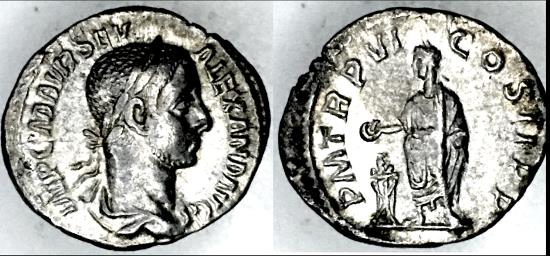 SEVERUS ALEXANDER, EMPEROR STANDING, DENARIUS