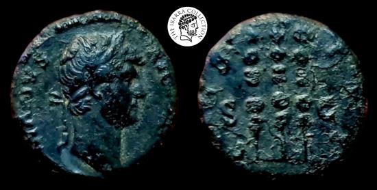Hadrian AE Quadrans. Rome mint. AD 134-138. HADRIANVS AVGVSTVS P P, laureate head right / COS III, three standards, S-C across fields. 3.00g, 17mm. RIC 977. aVF.