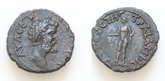 THRACE, Augusta Traiana. Septimius Severus. AD 193-211. Æ 18mm (3.56 g, 2h). Laureate head right / Apollo standing left, holding patera and bow.