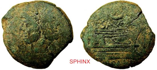 383GK2Z) ROMAN REPUBLIC, Anonymous. 157-156 BC. AE As (30 mm, 19.55 g). Rome mint. Laureate head of bearded Janus / Prow of galley right with peaked deck structure; I (mark of value) to right. with L. SAVF above prow. 152 BC. Crawford 204/2 Sydenham 385; Dark green-brown surfaces aFINE; RARE.