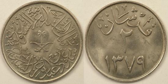 SAUDI ARABIA, Sa'ud Bin Abd Al-Aziz, AH1379 (1959), 2 Ghirsh, BU