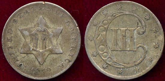 1852 SILVER THREE CENT XF ... very original