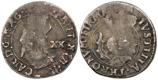 SCOTLAND Charles I 1625-1649 20 Pence Falconer's anonymous issue: 1637-1642 Fine