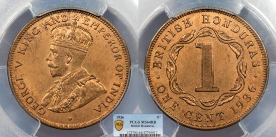 BRITISH HONDURAS George V 1936 Cent PCGS MS-64 RB