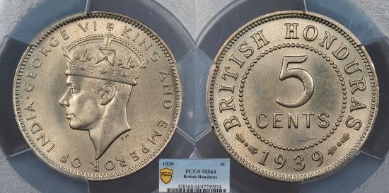 BRITISH HONDURAS George VI 1939 5 Cents PCGS MS-64