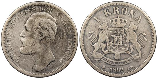 SWEDEN Oscar II 1889 Krona Fine