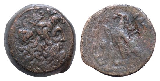 | Ptolemy VI Philometor, first reign, 180-164 BC. AE Bronze, 26 mm, 14.6 g, uncertain mint on Cyprus. Diademed head of Zeus Ammon to right, with ram's horn , Eagle |