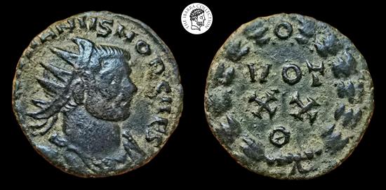 Galerius Maximian, AE radiate fraction, 305-311 AD. Rome mint. MAXIMIANVS NOB CAES, radiate, draped, cuirassed bust right / VOT XX Epsilon in three lines within wreath. 19mm, 2.73g. RIC VI Rome 88b. Very Fine.