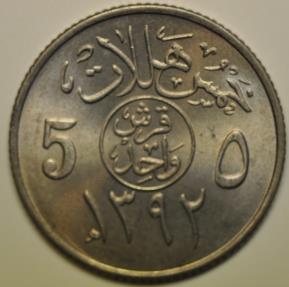 Saudi Arabia 5 Halala AH1392 ~ 1972 UNC