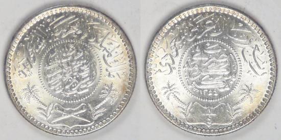 SAUDI ARABIA - United Kingdoms, Abd al-Aziz, AH1354 (1935) ¼ Riyal, Gem BU