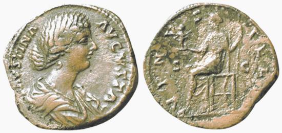 Obv: FAVSTINA AVGVSTA; Draped bust right.