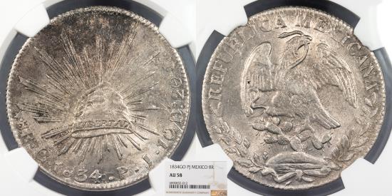 MEXICO Republic 1834-Go PJ 8 Reales NGC AU-58