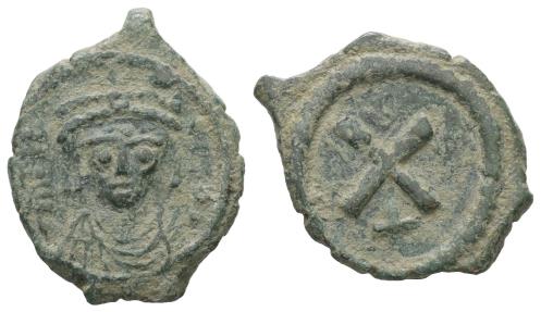 Obverse: [δ m TIЬ CONTAT P P]. Frontal bust of Tiberius II Constantine in crown, draped and cuirass.