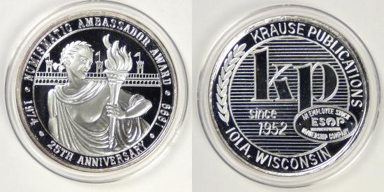 1999 Numismatic Ambassador Award 25th Anniversary Medal, Gem Proof Deep Cameo
