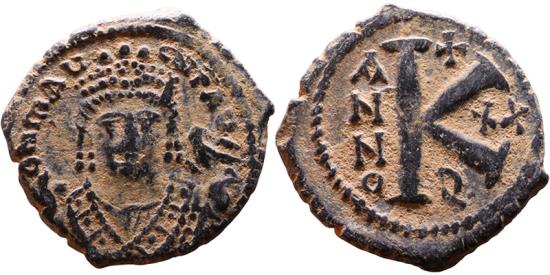 Ancient Byzantine coin of the Emperor Maurice Tiberius 582-602 AD