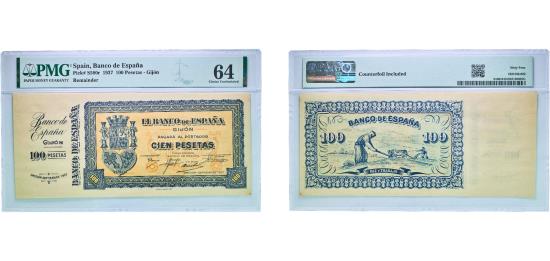 Spain Kingdom 1937 100 Pesetas Gijon ¨Remainder¨ Paper Choice Uncirculated 64 Pick S580r