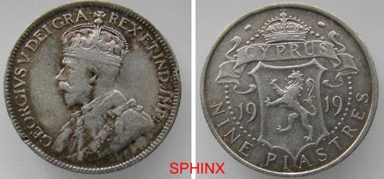 568CH5U) BRITISH CYPRUS, AR silver 0.925, 5.5 grms, 1919 AD, KM # 13, VF.