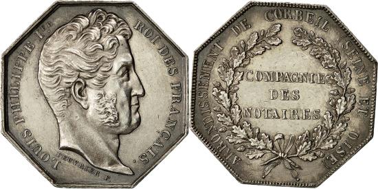 | France, Token, Louis XVIII, Compagnie des Notaires de Corbeil, Peuvrier |