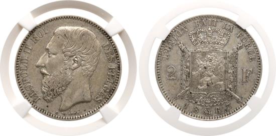 Belgium. Leopold II (1835-1909) 2 Francs 1867. NGC AU 53