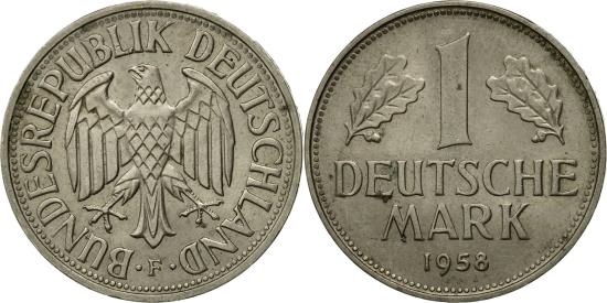 | | Coin, GERMANY - FEDERAL REPUBLIC, Mark, 1958, Stuttgart, | | | Eagle, Denomination flanked by oak leaves, date below | | FEATURES |