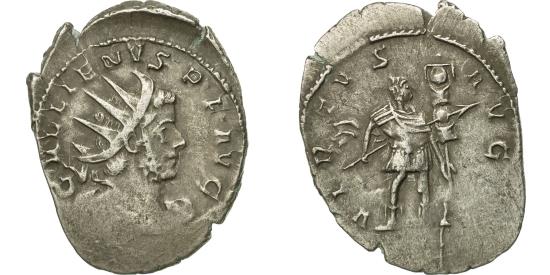 | | Coin, Gallienus, Antoninianus, 258-259, Rome, , Billon, RIC:58 | | | Radiate head right, Gallienus standing right holding spear, GALLIENVS PF AVG, VIRTVS AVG | | FEATURES |