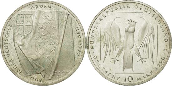 | | Coin, GERMANY - FEDERAL REPUBLIC, 10 Mark, 1990, Hamburg, Germany, | | | Eagle above denomination, Wrinkled page with Madonna and child pictured, shield upper left | | FEATURES |