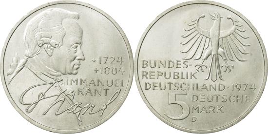 | | Coin, GERMANY - FEDERAL REPUBLIC, 5 Mark, 1974, Munich, Germany, , Silver | | | Legend divides eagle and denomination, Bust at left facing right, name and dates at right | | FEATURES |