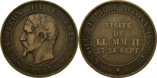 | | Coin, France, 10 Centimes, 1853, Lille, , Bronze, KM:M24, Gadoury:249 | | | Struck at Lille. | | FEATURES |