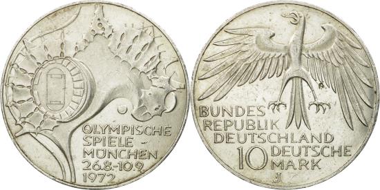 | | Coin, GERMANY - FEDERAL REPUBLIC, 10 Mark, 1972, Hambourg, , Silver | | | Eagle above denomination, Stadium - aerial view | | FEATURES |