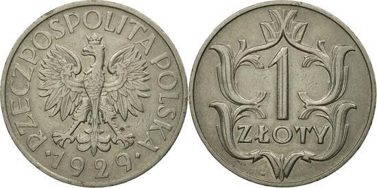 | | Coin, Poland, Zloty, 1929, Warsaw, , Nickel, KM:14 | | | Crowned eagle with wings open, Value within stylized design | | FEATURES |