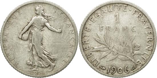 | | Coin, France, Semeuse, Franc, 1906, Paris, , Silver, KM:844.1, Le | | | Semeuse, Figure sowing seed, Leafy branch divides date and denomination, Without mint mark. | | FEATURES |
