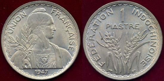 FRENCH INDO CHINA 1947 1 PIASTRE CHOICE BU